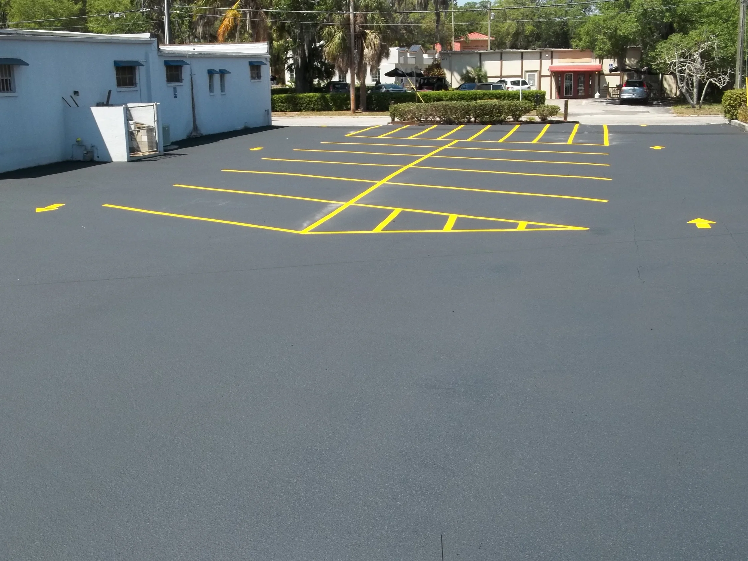 Sealing and striping is the only way to get the most out of your asphalt investment. Most all sealer is an emulsion. That means it is diluted by water. Do yourself a favor, check some recent locations. We always have some current sites for you to look at. You should be looking for things like: